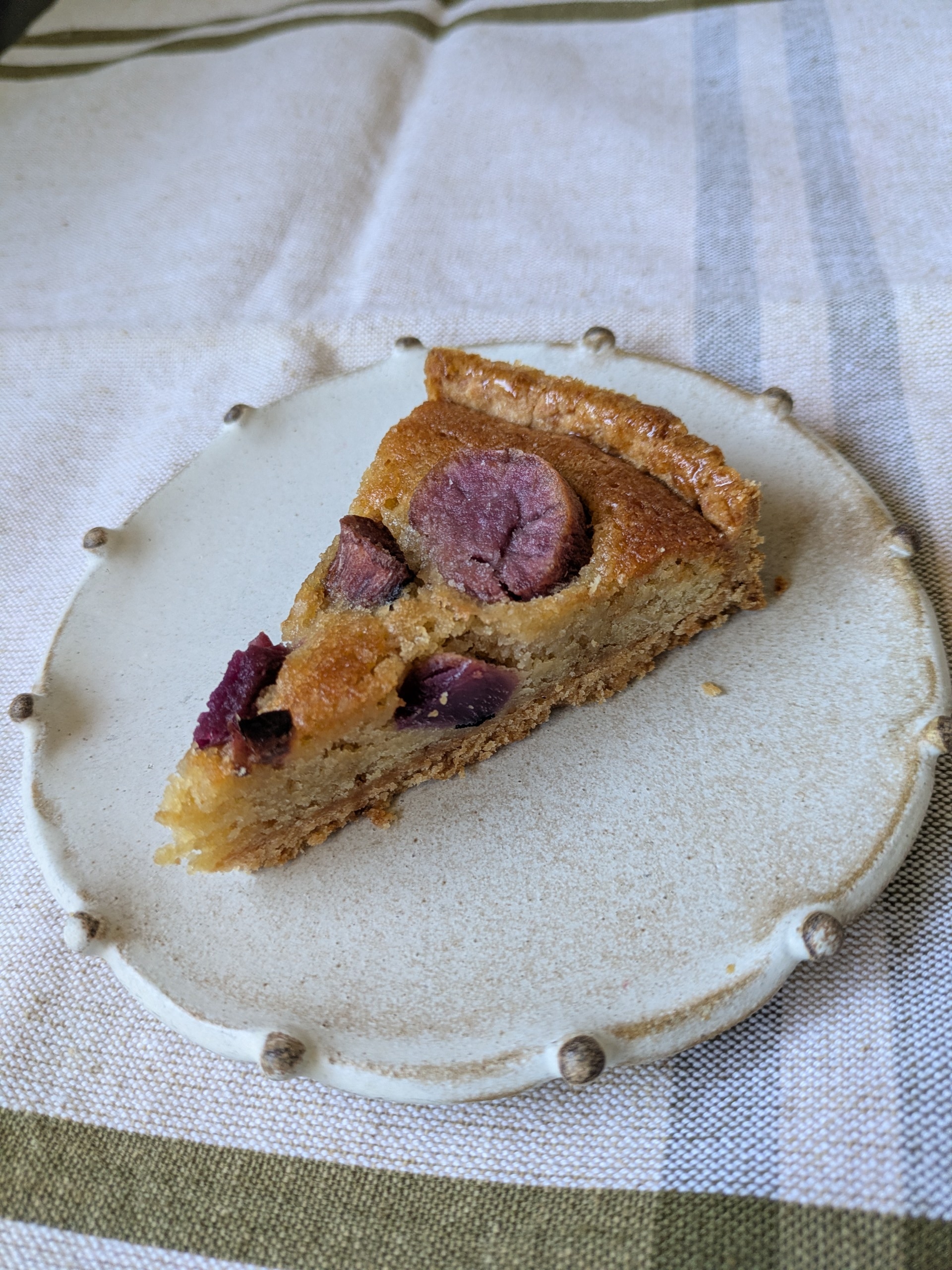 今週末のケーキは「焼き芋タルト」。豆乳バターのアーモンドクリームにオイル系タルト生地だから、軽くもたれません。しっかり糖度が増したお芋は我が畑の無農薬です!