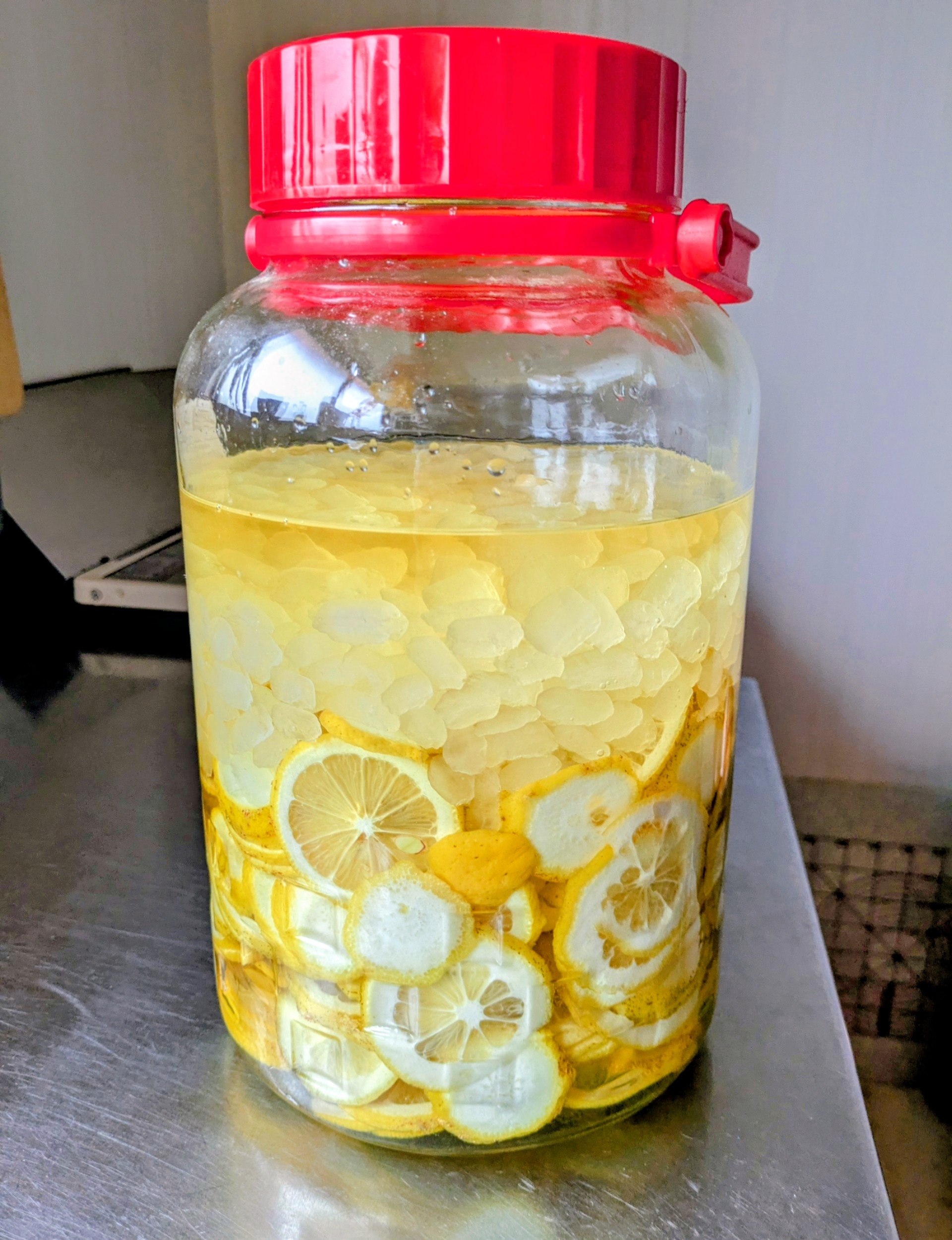 てこともあって、今年も漬けました。無農薬レモン酢です。